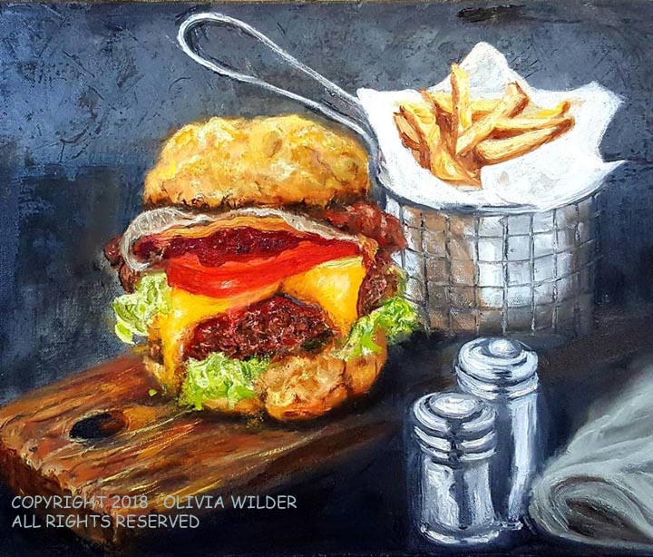 I will add paintings to the site as often as I can. I paint what I love, so there is a variety of subjects. I love to do commissions, and will work with you to create your vision. Pet portraits, figurative, food and drink, animals, still live, landscape and abstract. I love and do it all. Some of these paintings are available for purchase. Don’t hesitate to contact me.